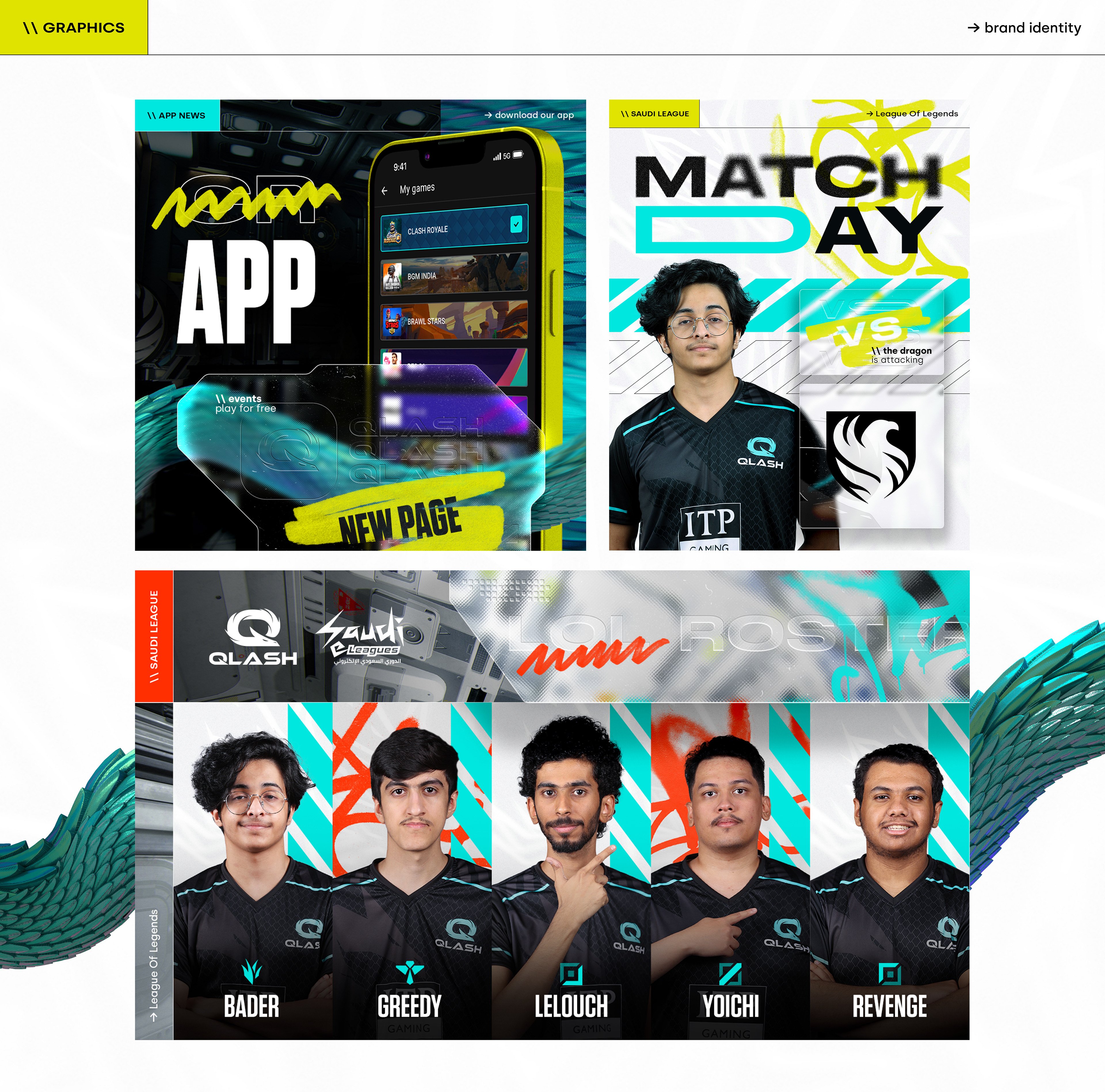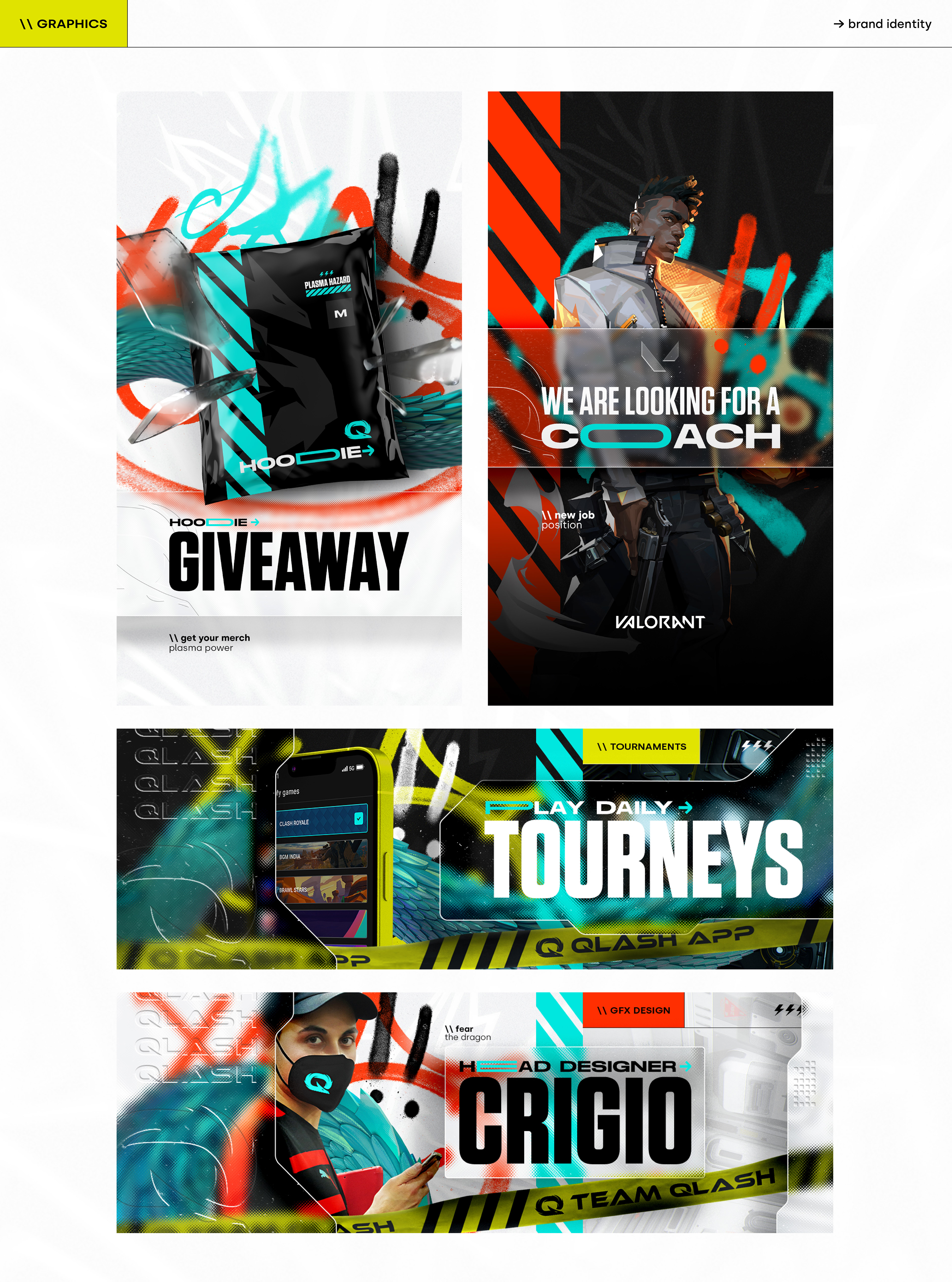 The new brand identity of Team QLASH, the most important Esports Italian team, and one of the main European teams.