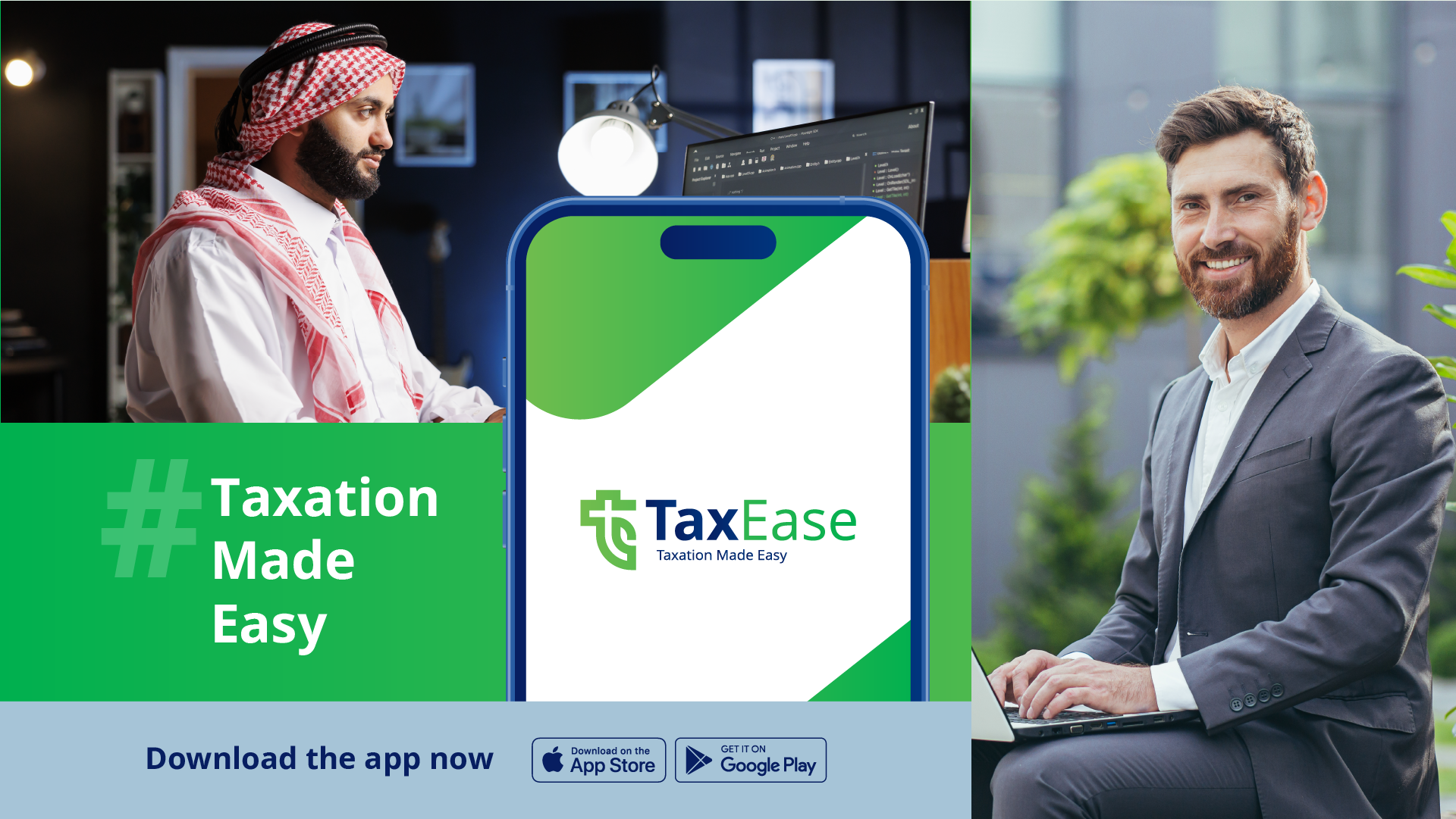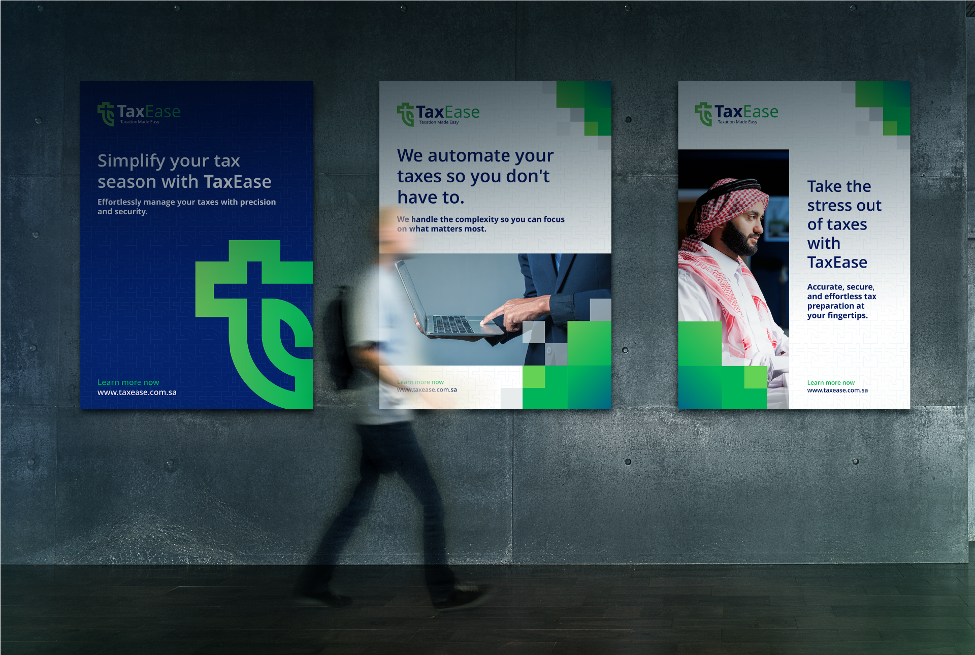 The TaxEase logo incorporates a stylized "T" and "E" intertwined with a leaf element.